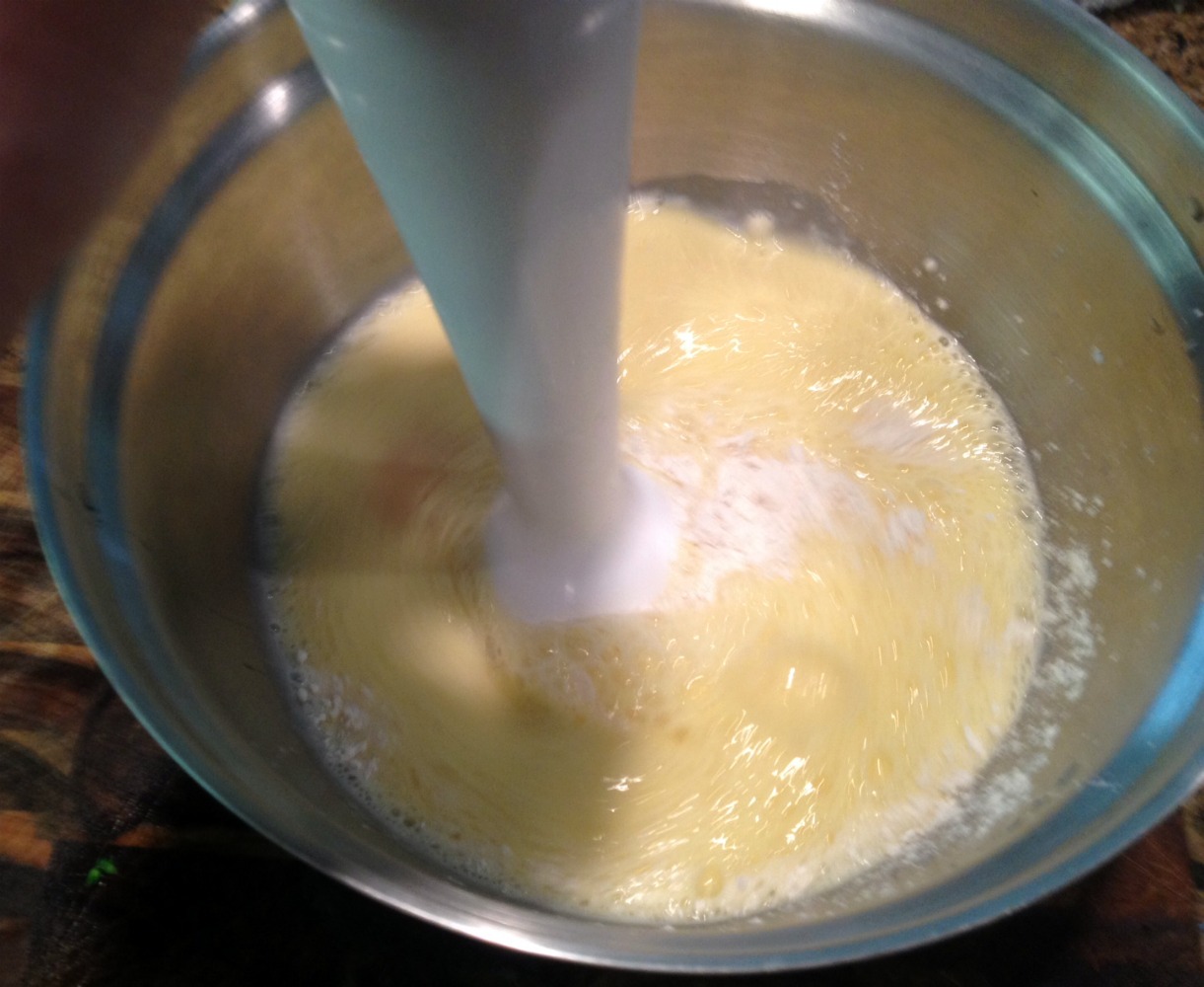 Create your egg mix by combining 8 eggs, 1/2 cup of milk and 2 tablespoons of
